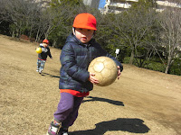 | サッカーボールを蹴っているところ! とっても楽しそうですね~ |