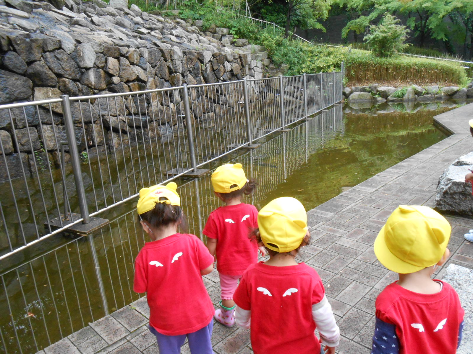 途中で、池の鯉を見たり、ハウスクエアでは、ミッフィーや象の大きな人形を見たりしながら、元気にたくさん歩きました。