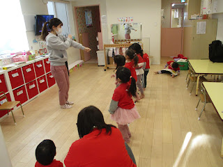 絵本を読み、発表会の練習をしています。