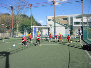 サッカーのレッスンはフープを使って