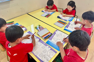 We started by tracing the broken lines slowly and following the numbers accordingly to do the right stroke.